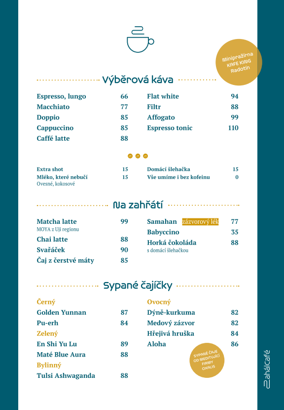 U nás si vychutnáte šálek poctivé výběrové kávy připravené s láskou a péčí baristů.